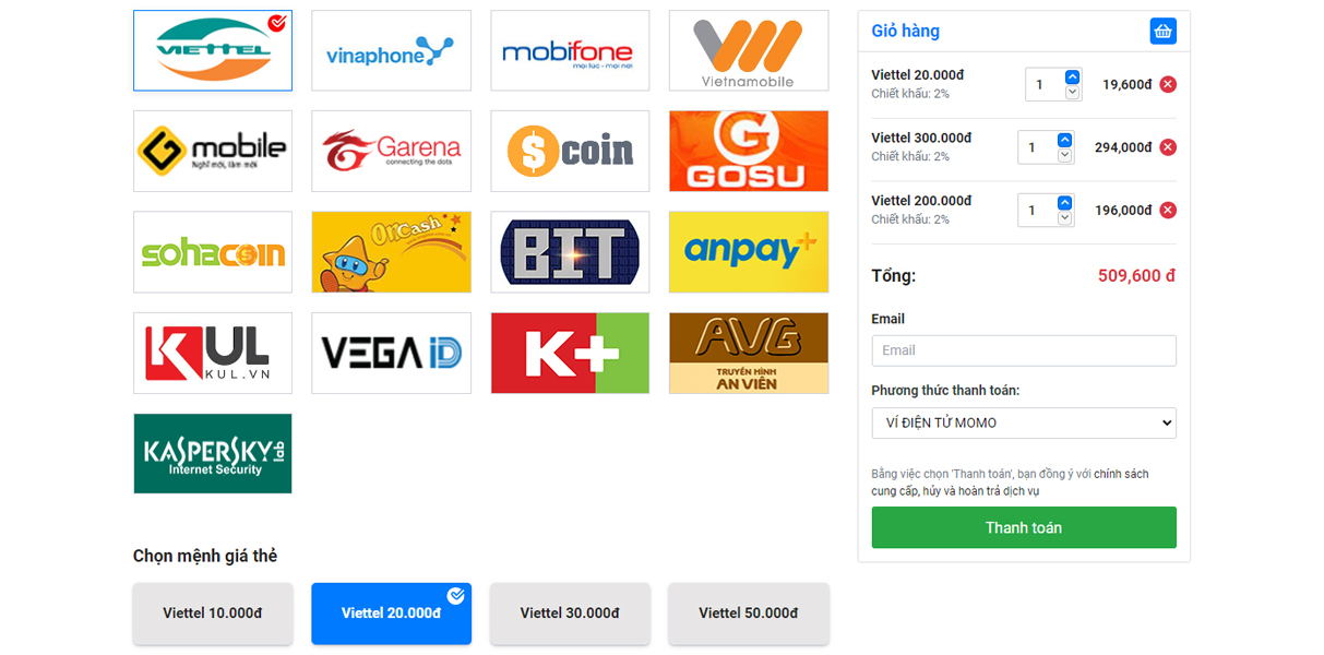 Giải pháp bao gồm các tính năng như quản lý sản phẩm (thẻ cào, thẻ game, topup), quản lý đơn hàng và giao dịch, tích hợp cổng thanh toán, quản trị người dùng và phân quyền, cùng các công cụ báo cáo, thống kê theo thời gian thực. Nhờ đó, chủ website có thể dễ dàng kiểm soát mọi hoạt động kinh doanh thẻ thuận tiện nhất.