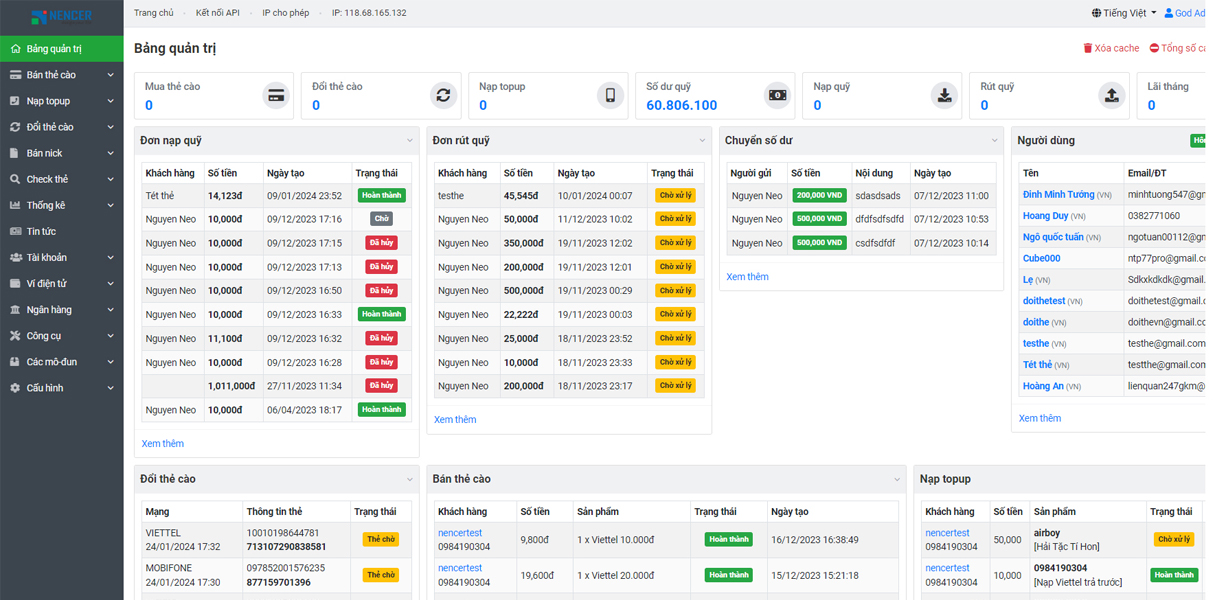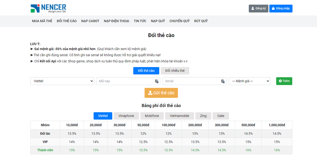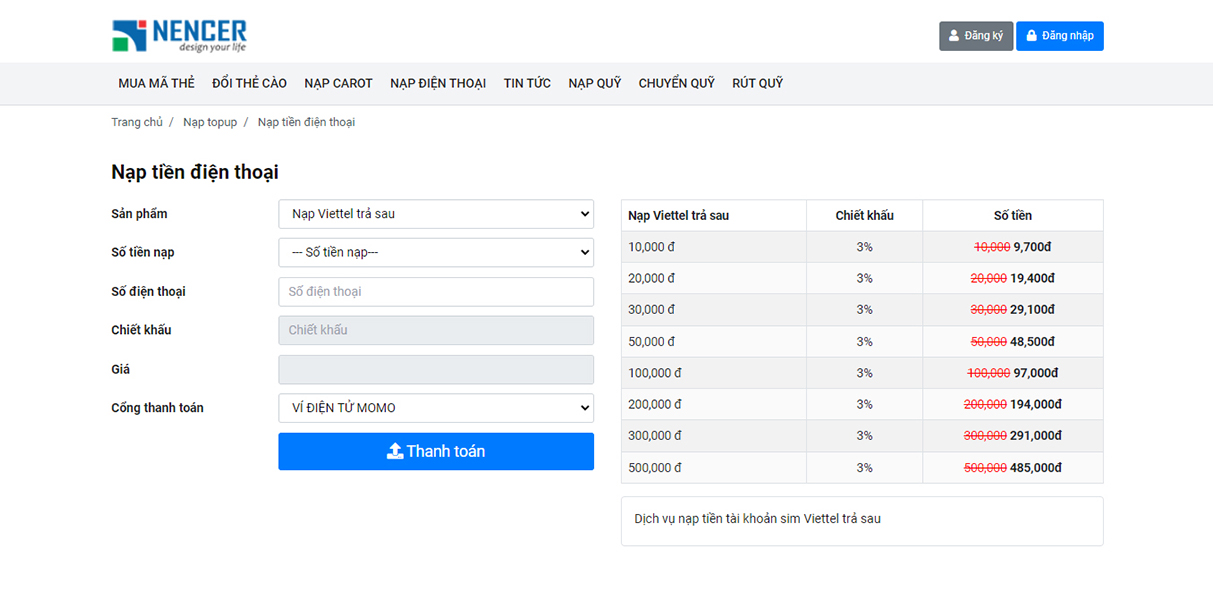 Nencer Card là sản phẩm website chuyên nghiệp của Nencer, cho phép các cá nhân, doanh nghiệp thiết lập và vận hành hệ thống bán thẻ cào, nạp tiền trực tuyến (topup) và các dịch vụ tương tự. Sản phẩm được tối ưu về tốc độ, tính bảo mật và khả năng tùy chỉnh theo nhu cầu của từng đơn vị.